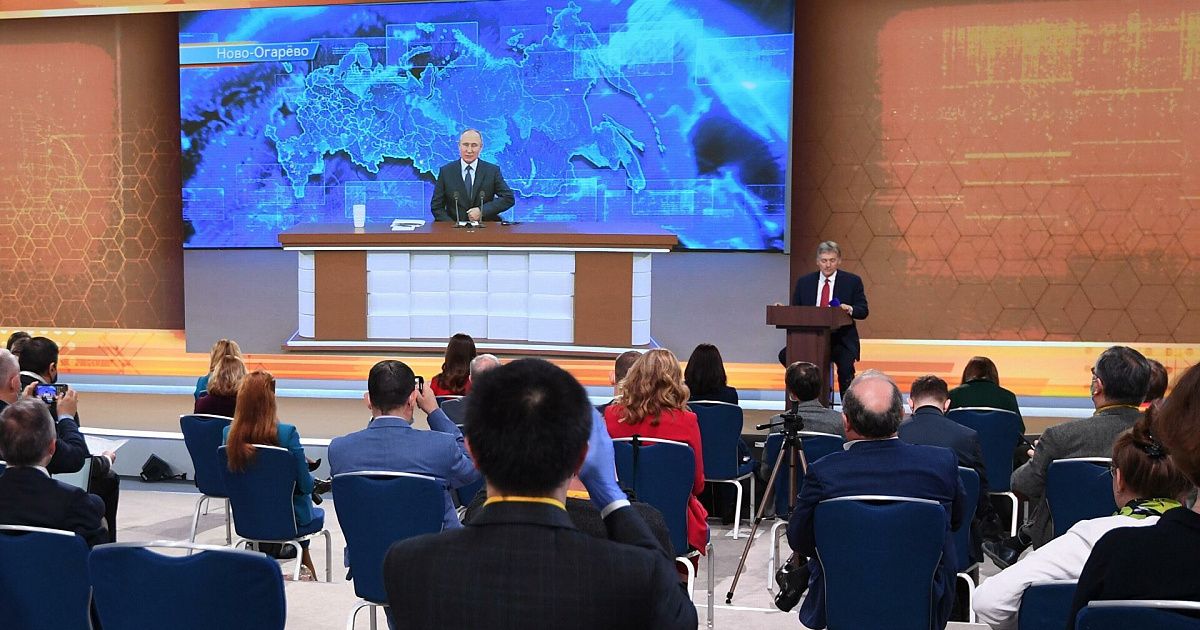 Vladimir Putin mətbuat konfransında jurnalistlərin suallarını cavablandırır.[/caption]